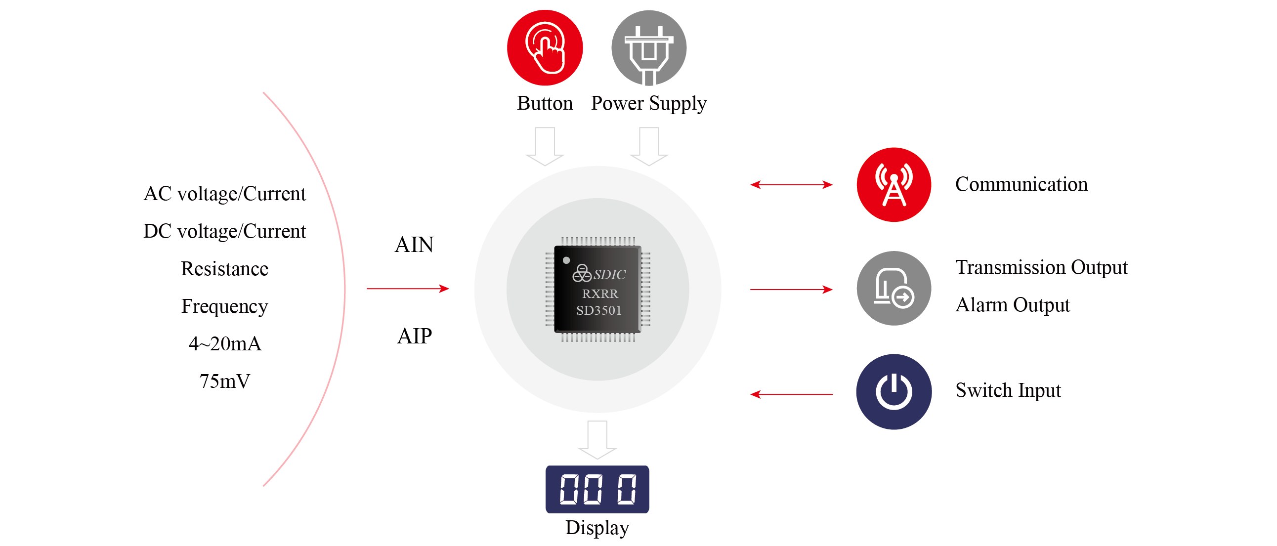 Integrated TRMS. External rectifier device is not needed for AC measurement