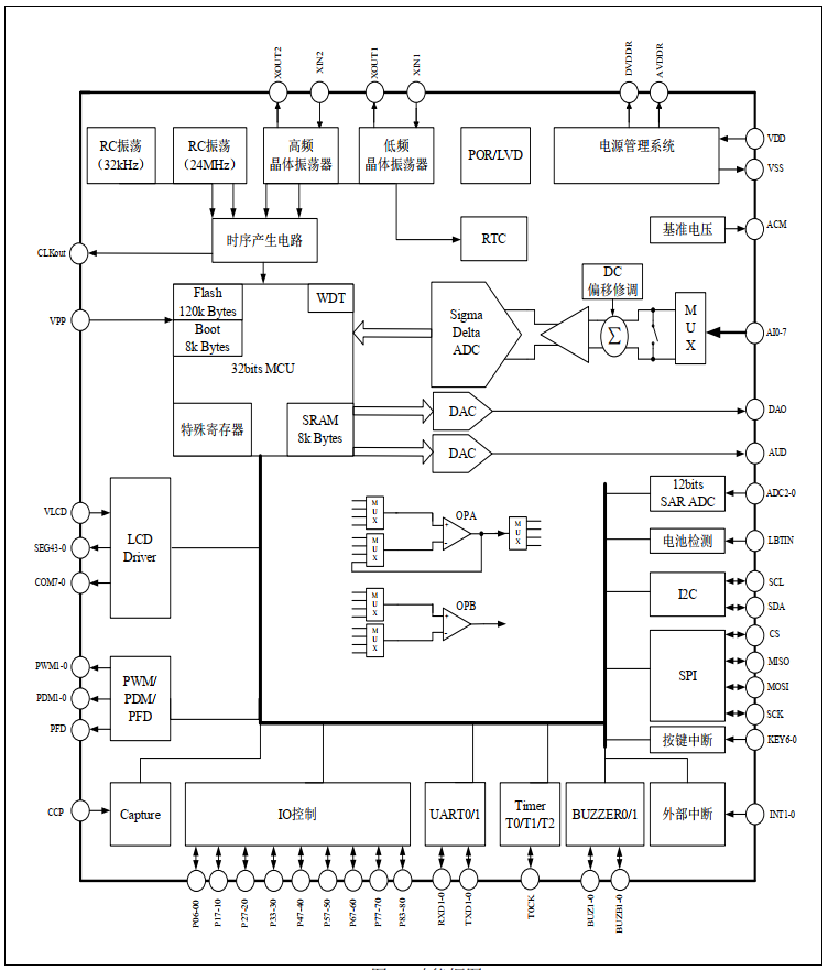 • 内置蜂鸣器输出驱动,驱动的时钟和频率可设置